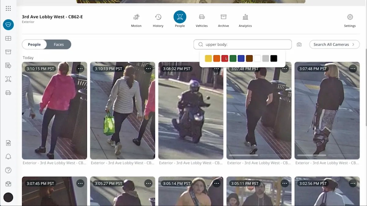 With AI-driven color recognition, locating people, vehicles, or objects based on color attributes becomes fast and intuitive. Search for phrases like “red sedan,” “person in a blue jacket,” or “black backpack,” and the system instantly scans footage across all connected cameras. This significantly reduces investigation time and helps teams respond to incidents more efficiently, without manually reviewing hours of video.
